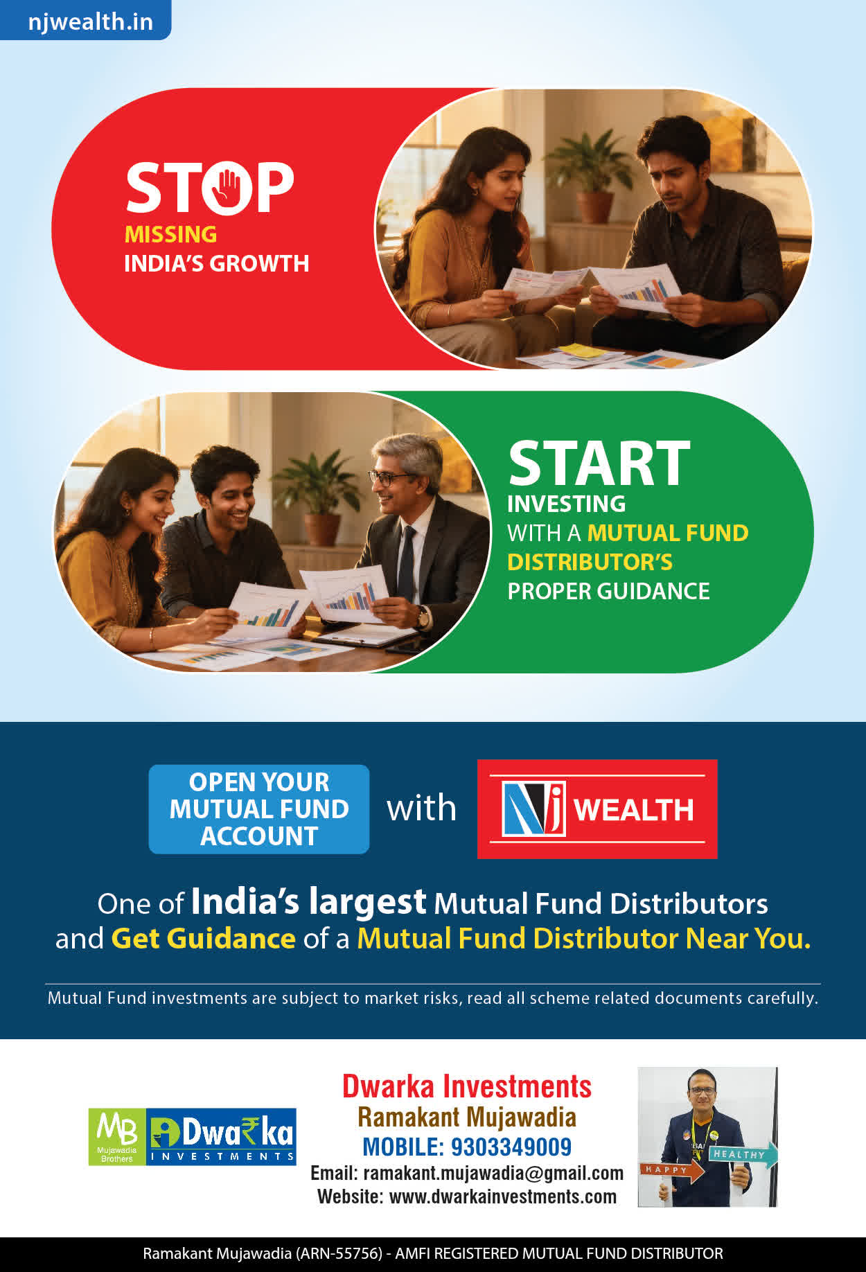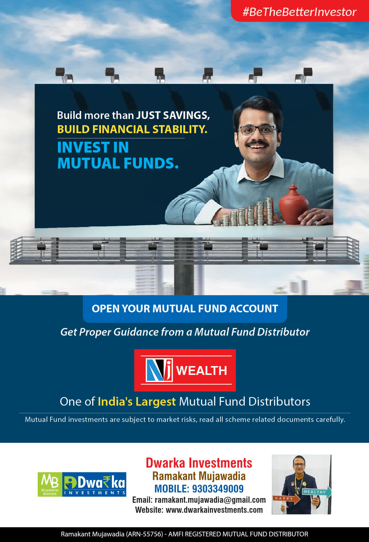 We as Dwarka Investments incorporated in the Year 2006 and at present having 1500 Satisfied Clients. We will help clients to achieve their Financial Goals with effective and smart investment planning. We are Certified Wealth Manager, Mutual Fund and Insurance consultants recognized by the NSE National Stock Exchange, AMFI (Association of Mutual Fund of India).